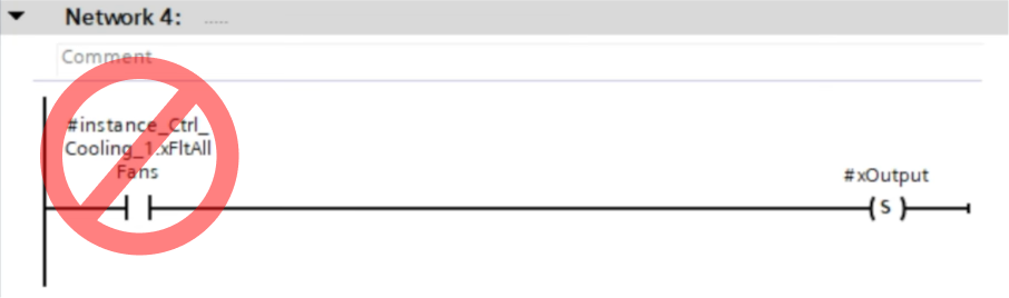 Tip number three, and this is a very important rule in PLC programming (even though I still see it being ignored all the time...) is this: instance data should only be used inside the function block that owns it. It should never be used in external logic somewhere else in your application, and it should definitely never be used directly on an HMI.